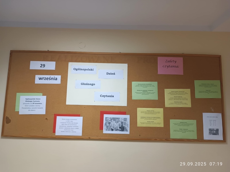 Ogólnopolski Dzień Głośnego Czytania został ustanowiony z inicjatywy Polskiej Izby Książki w 2001 roku. Obchodzony jest w całej Polsce 29 września. Data ta odnosi się do urodzin Janiny Porazińskiej, autorki książek dla dzieci i młodzieży. Czytanie dzieciom na głos stymuluje ich rozwój, wzbogaca słownictwo i pobudza wyobraźnię.