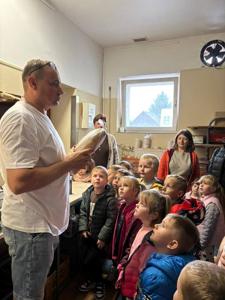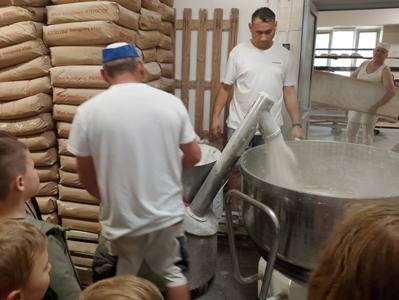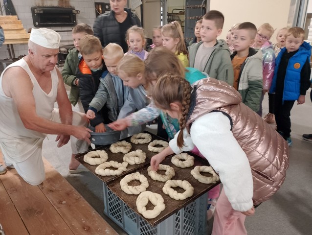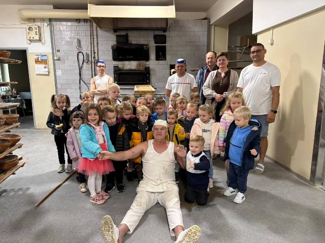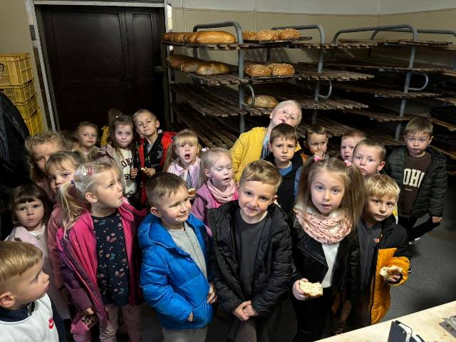 15 października przedszkolaki wybrały się na wycieczkę do Piekarni GS w Pilźnie. Podczas wycieczki dzieci miały możliwość zobaczyć jak wygląda piekarnia od środka. Z wielkim zainteresowaniem przyglądały się pracy piekarza, poznały etapy powstawania pieczywa oraz produkty potrzebne do ich wypieku. Zobaczyły urządzenia, które pomagają w pracy piekarzowi. Największą przyjemność sprawiło im kosztowanie świeżo upieczonych bułeczek.