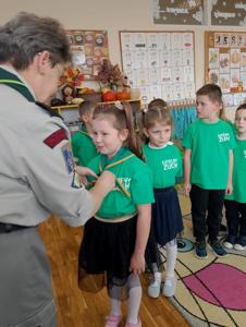 28 października w naszym przedszkolu odbyło się Ślubowanie Dzielnych Zuchów. Przedszkolaki z najstarszej grupy otrzymały koszulki grupowe, a z rąk harcmistrz Bernadetty Bańdur, Komendantki Hufca ZHP Ziemi Pilźnieńskiej, otrzymały także chusty.