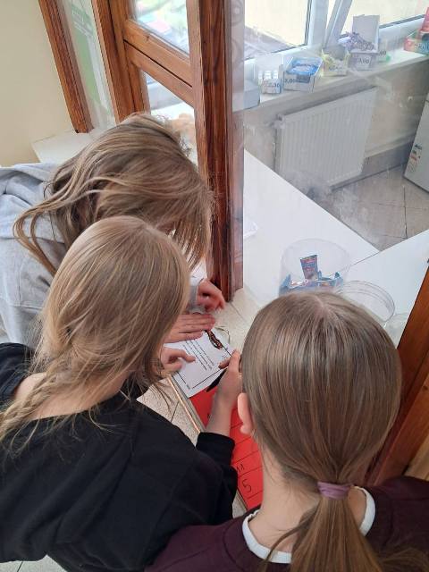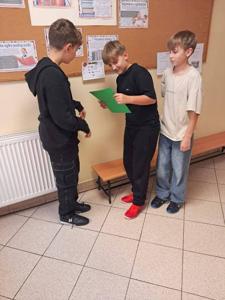 Uczniowie klasy 6 stanęli przed nie lada wyzwaniem! Po całej szkole zostało porozwieszanych przez klasę ósmą 12 matematycznych zadań, które trzeba było odnaleźć, rozwiązać i wpisać odpowiedzi na kartach swojej grupy. Zagadki pochodziły z zasobów Królowa Matma i świetnie sprawdziły się jako pomysł na nietypową lekcję matematyki z nutką rywalizacji i logicznego myślenia.W przedszkolu: