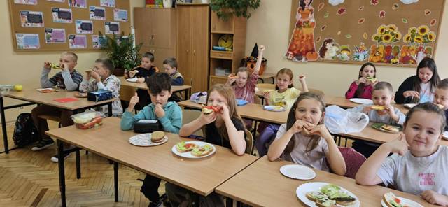 - Klasa II wie, jak zdrowo się odżywiać, własnoręcznie przygotowali na śniadanie kanapki.