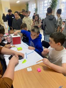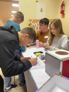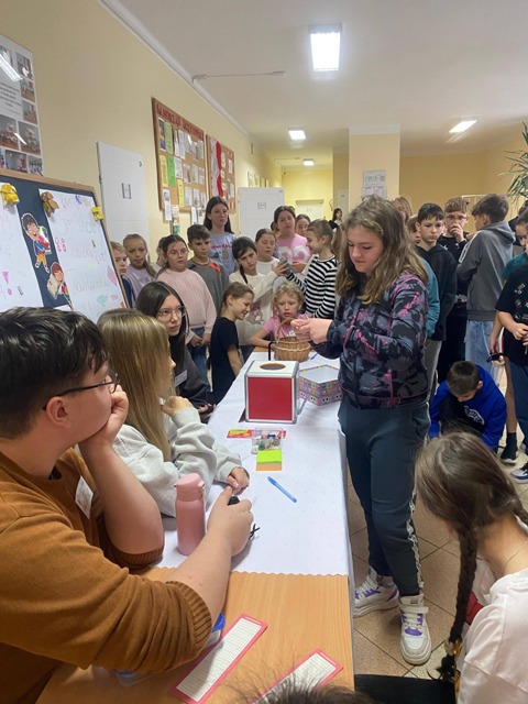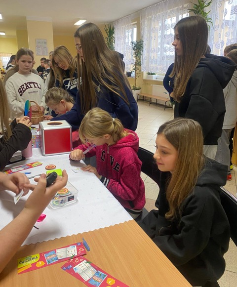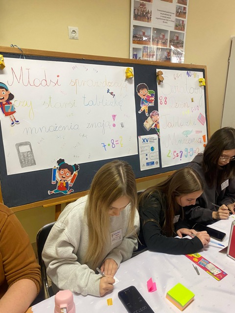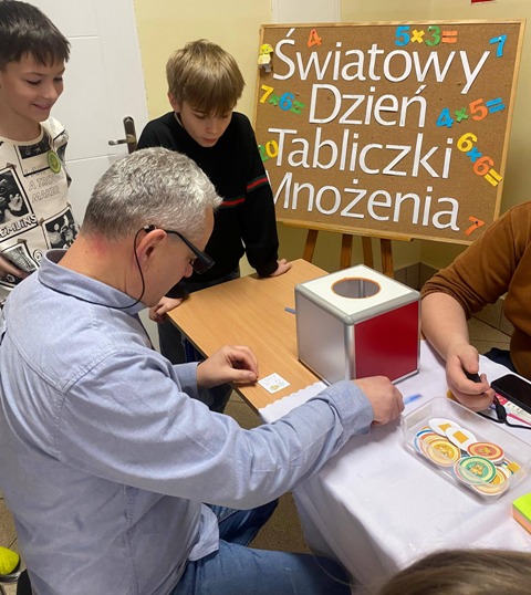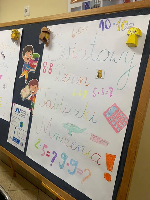 21 listopada, w naszej szkole obchodziliśmy XV Światowy Dzień Tabliczki Mnożenia. Jest to akcja edukacyjna, która pozwala starszym i młodszym doskonale się bawić, a zarazem rozwijać swoje umiejętności matematyczne. Uczniowie wcielili się w rolę egzaminatorów i przepytywali innych z tabliczki mnożenia: uczniów, pana dyrektora, nauczycieli, pracowników szkoły oraz napotkanych przechodniów. Każdy uczestnik losował zestaw przykładów o różnym stopniu trudności. Jeśli ktoś poprawnie odpowiedział na 5 pytań, otrzymał odznakę Eksperta Tabliczki Mnożenia. Nie było to łatwe zadanie, ponieważ eksperci mierzyli czas.