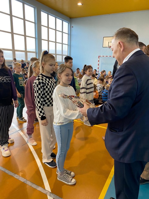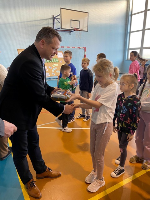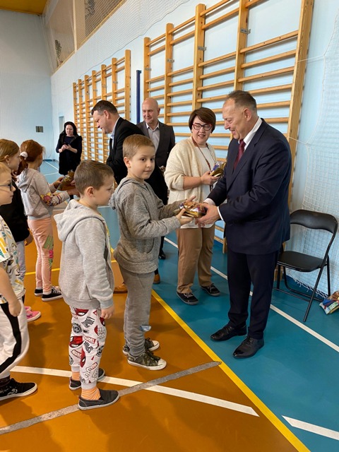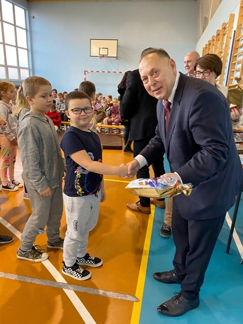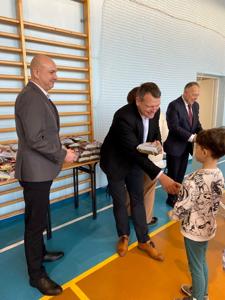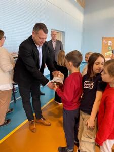 Dzisiaj naszą placówkę odwiedzili Burmistrz Tadeusz Pieczonka oraz Mirosław Miczek Z-ca Burmistrza Pilzna, którzy uroczyście wręczyli wszystkim uczniom biorącym udział w programie pakiety startowe. Uczniowie otrzymali zestawy artykułów papierniczych oraz grę.