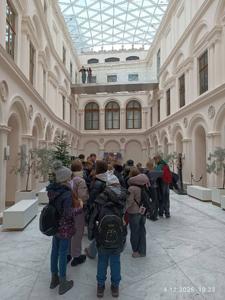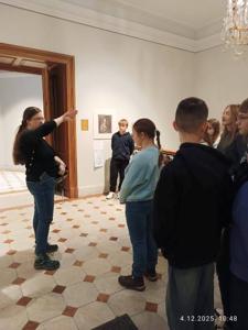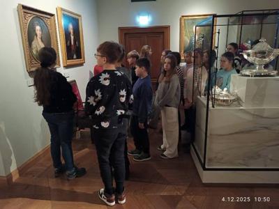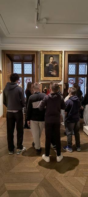 Pierwszym punktem wycieczki było Muzeum Książąt Czartoryskich, jedno z najstarszych i najcenniejszych muzeów w Polsce. W Muzeum Książąt Czartoryskich uczniowie mieli okazję zobaczyć jedne z najcenniejszych dzieł sztuki znajdujących się w polskich zbiorach. Wśród nich znajduje się słynny obraz „Dama z gronostajem” Leonarda da Vinci – jedno z najważniejszych i najrzadszych dzieł renesansu na świecie. Uczniowie mogli także podziwiać arcydzieła europejskiego malarstwa, m.in. prace Rembrandta, bogaty zbiór rzemiosła artystycznego, zbroje rycerskie, orientalne dywany, porcelanę oraz przedmioty związane z historią Polski, takie jak pamiątki po królu Stanisławie Auguście Poniatowskim czy Tadeuszu Kościuszce.